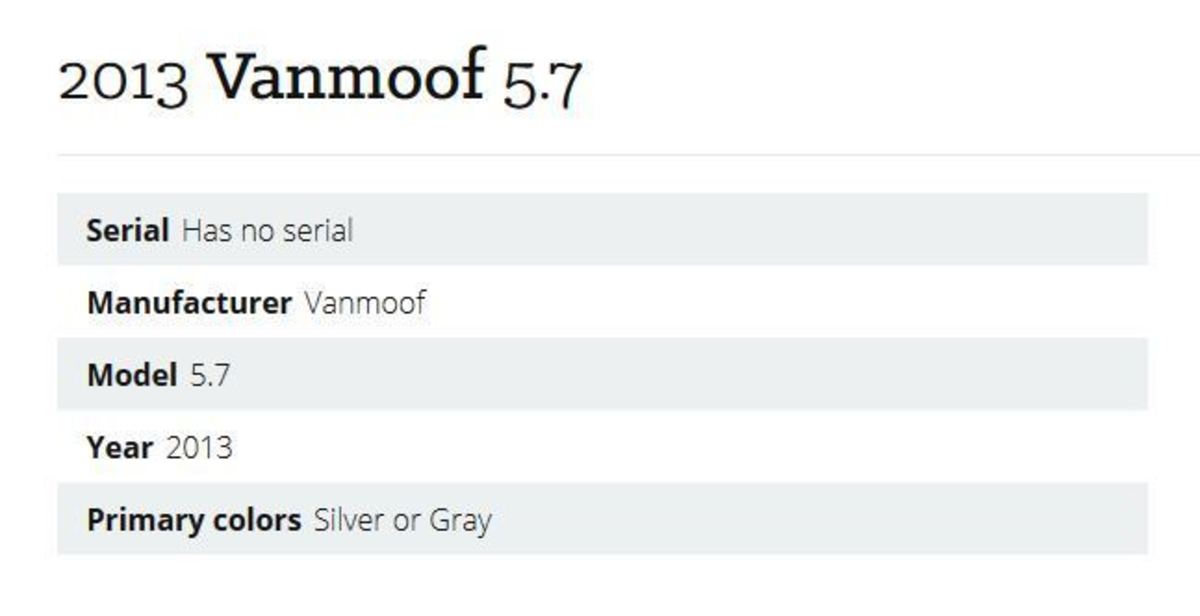 2013 Vanmoof 5.7 Recovered: 12/8/2015