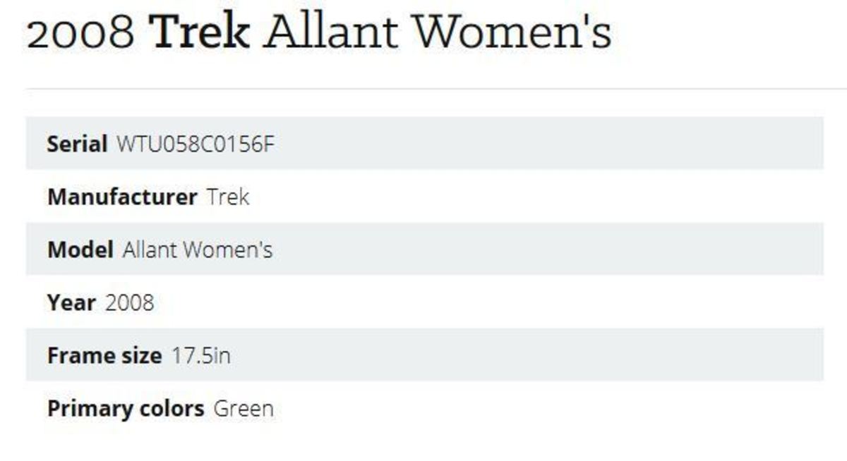 Stolen 2008 Trek Allant Women's Recovered: 12/19/2015