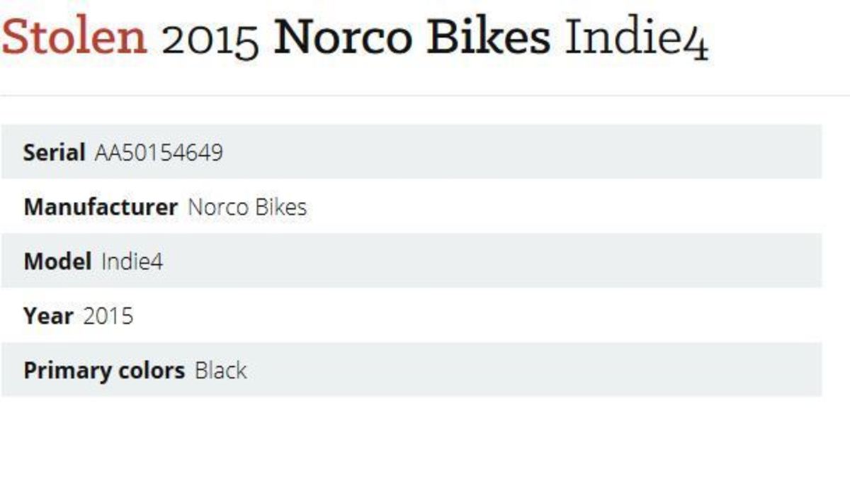 Stolen 2015 Norco Bikes Indie4 Recovered: 12/24/2015