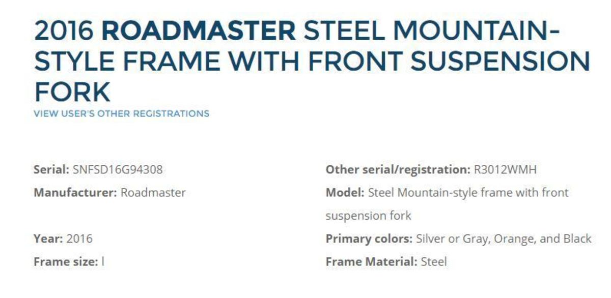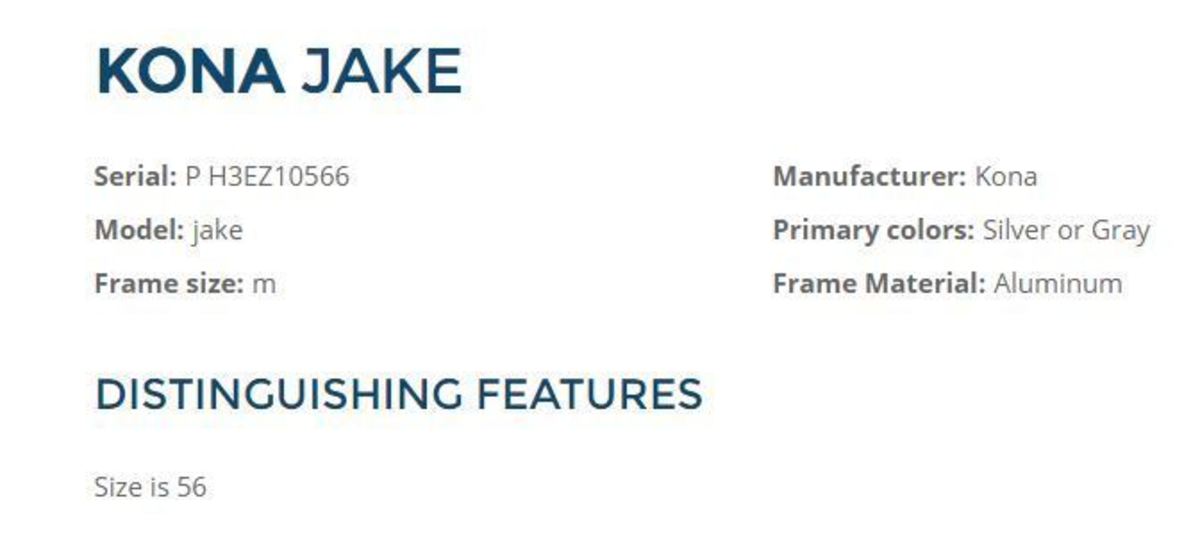 I spotted my bike at an encampment less than a mile from my home. I did not have the serial number logged anywhere other than Bike Index, so it was helpful that i could retrieve that info here and use it in my police report, which was crucial in getting my bike back after calling it in. The wheels had been replaced, the light and the fenders removed, but I am glad I do not have to replace the whole thing!