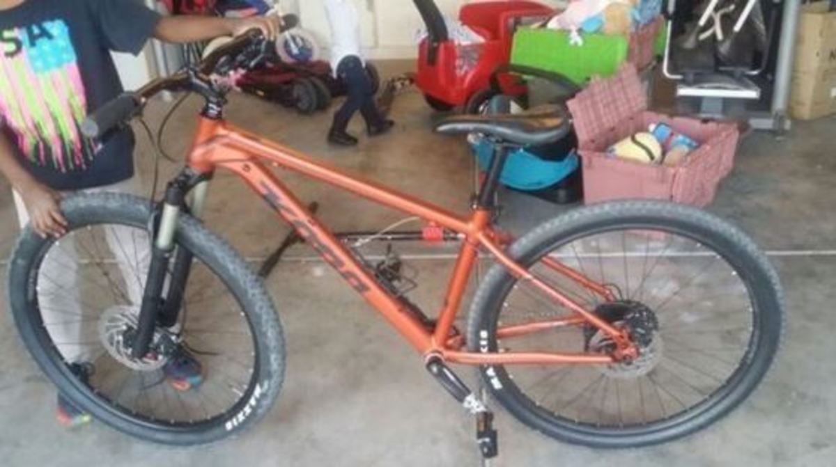 'Your bike was brought into our shop over the weekend for repair. The frame looks to be the only thing left of the original bike. We let the customer know they had bought a stolen bike. He left it at out store. Please call.'