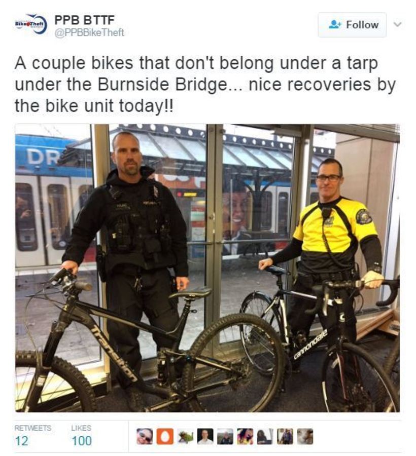 'The Portland Police Bike Theft Task Force found it after I registered the bike with Bike Index'