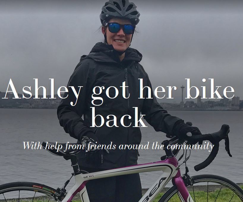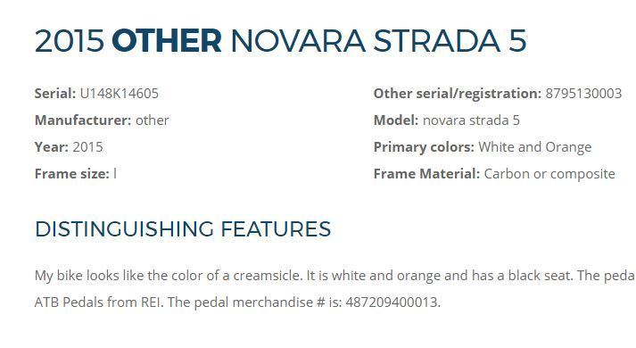 "A kind soul found it on Craigslist and went out of his way to return it to me when he saw my stolen bike report. I'm so appreciative!"