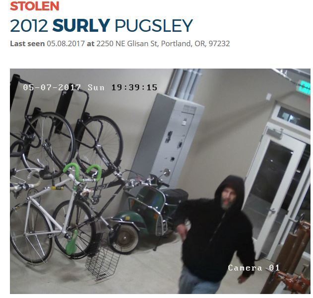 Here's one that got away - Thieves broke into this locked bike room in a Portland apartment and the whole thing was caught on camera. This bike is still missing, but cops nabbed one of the thieves: "The two of the three individuals, the two that had visible faces from the camera footage are well known to the police. An officer I gave the still-shots to, passed them around and another officer was well acquainted with them (knew them both by name). I was told by the detective these guys live in an RV together that frequently sits around (redacted) Park about five or six blocks from the apartment building they stole the bikes from. The one that was arrested admitted to being the guy on the camera footage, admitted to taking property, but will not give up the third individual's name. To my knowledge the guy is sitting in jail awaiting trial today... I would appreciate people keeping an eye out for it (the bike), I have been checking every day since they took it..."