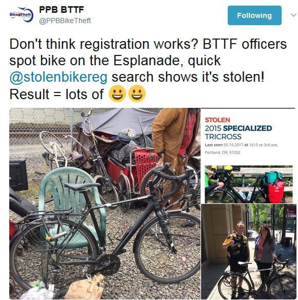 "Portland police found it during a cleanup of a camp and looked up the serial number using Bike Index! I was so happy I cried when they called to tell me it had been found. "