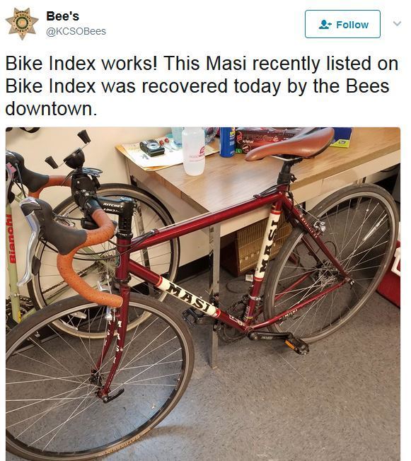 "Your bike was recovered by the King County Sheriffs Office today..." (Ed: y'all should follow the Bees on twitter at @kcsobees if you aren't doing so already)
