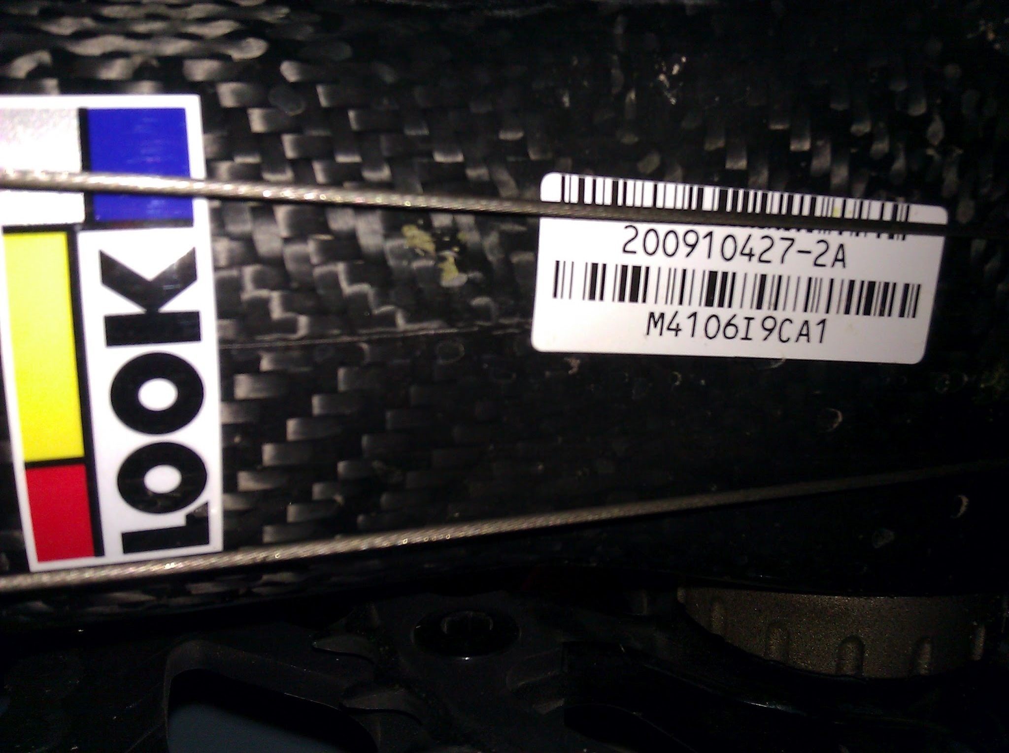Another serial number beneath the bottom bracket, aligned parallel to the frame.